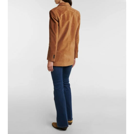 Add a touch of retro flair to your suiting with this corduroy blazer from Frame. The style has a single-breasted silhouette, peaked lapels, and flap pockets.