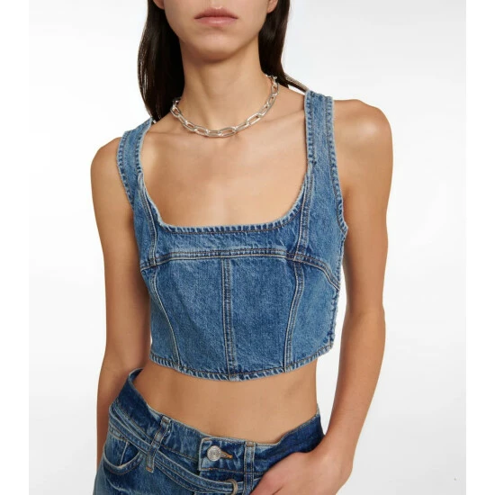 Made from pure cotton denim, this bustier from Frame is designed with a sculptural silhouette and a cropped length.
