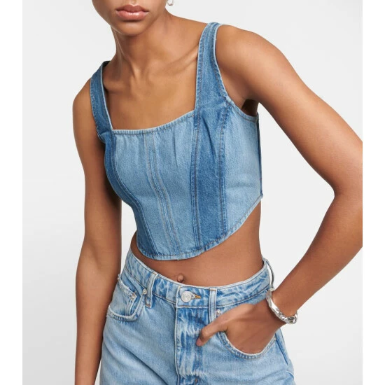 Perfect for a sunny day, this corset top from Frame can be dressed up or down. This piece is crafted from denim and is designed to be cropped.