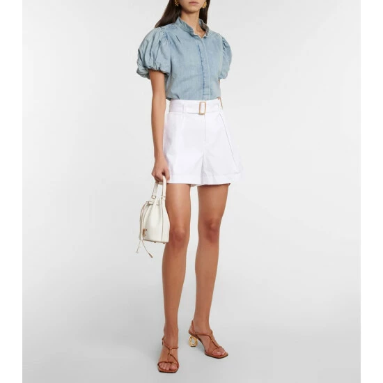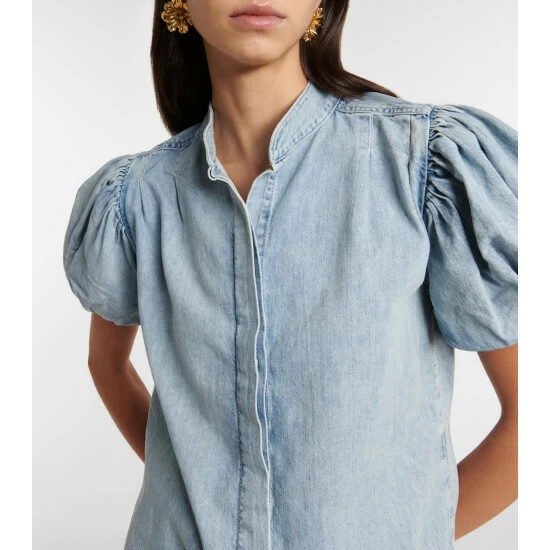 Opt for this effortlessly cool blouse from Frame for a contemporary style that will take you from day to night. Made from light-wash denim, the style has short, ruched balloon sleeves and concealed fastenings.