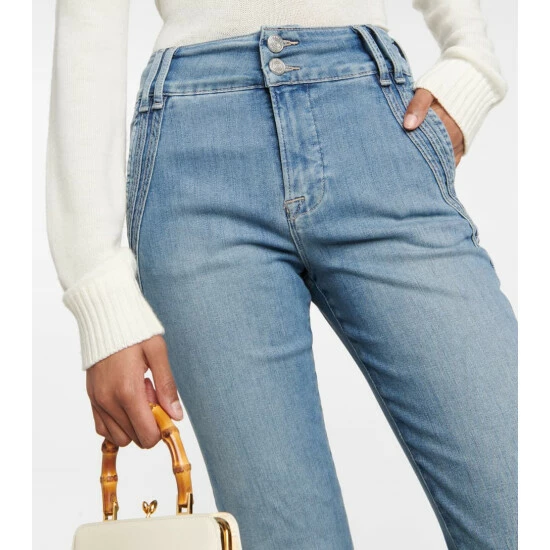 Creating unique denim styles unlike the rest is a Frame specialty. This flared style features elongated pockets with double-stitch details and a double-button closure.