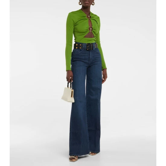 Frame creates iconic denim designs using fair manufacturing practices and sustainably sourced materials. This wide-leg silhouette is characterized by triple stitching to the double-button waistband and rear pockets, and bleached whiskering to the thighs.