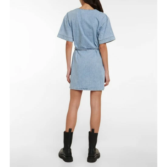 Made from cotton denim, this kaftan-inspired minidress from Frame has dropped shoulders and a belted waist.