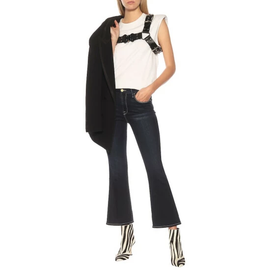 Showcase strappy sandals and chunky sneakers alike in the Le Crop Mini Boot jeans from Frame. The mid-rise, bootcut pair has been crafted in the US from the label’s Premium Stretch Denim for a snug yet comfortable fit. Note how their dark-blue wash features whiskering details and subtle fading, completing this slightly flared style on a laid-back note.