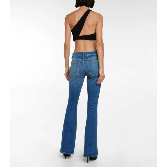 Frame’s wear-with-everything Le High Flare jeans are tinged with ’70s appeal. Made in the USA from stretchy stonewashed denim, they have a high-rise silhouette, slim legs, and flared hems.