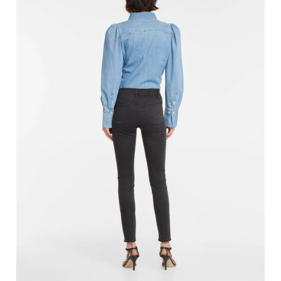 A perennial style with flattering features, the Le High Skinny jeans from Frame are rendered here in classic black. They have a sculpting skinny silhouette, and an elongating high-rise waist.