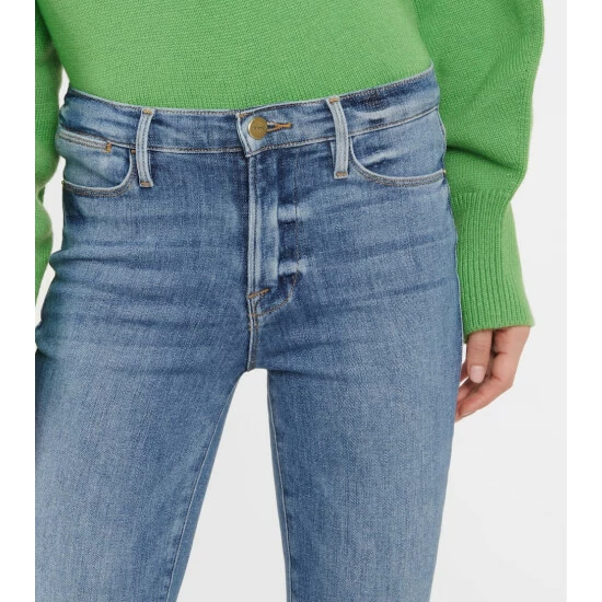 Frame’s faded blue Le High Skinny jeans feature a sculpting slim-legged silhouette and high-rise waist. They are made from shape-retaining denim, and finished with modern stepped raw-edged cuffs.