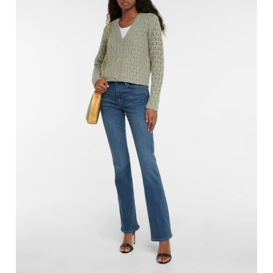 Your denim collection shouldn’t be without a pair of bootcut jeans, like the Le Mini Boot pair from Frame. They’re made from faded mid-wash blue denim with a mid-rise waist, slim-fit thighs and flared calves for a modern nod to bygone styles.