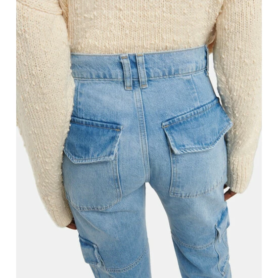 These high-rise jeans from Frame showcase a 90’s inspired utilitarian aesthetic. They are made from rigid denim featuring cargo flap-pockets and a straight leg silhouette which contrasts with the closely fitted seat.