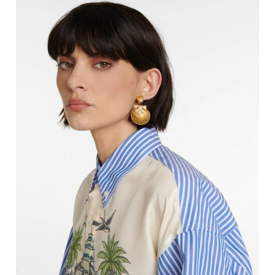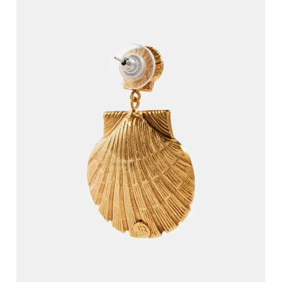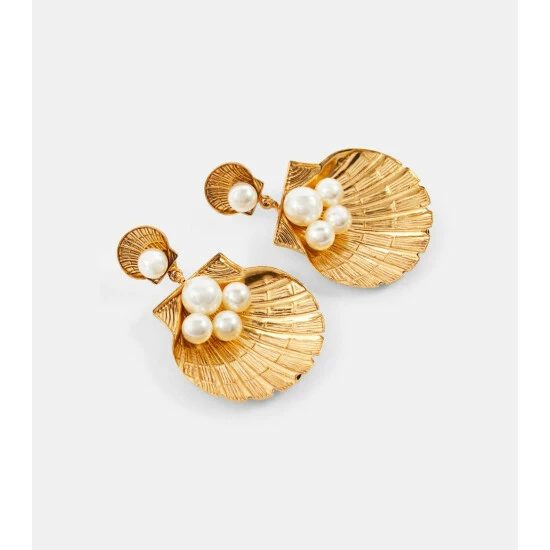 The Ariel earrings from Jennifer Behr are shaped and intricately engraved to mirror seashells. Made from gold-toned brass for pierced ears, they’re embellished with faux pearls for a final dose of luxury.