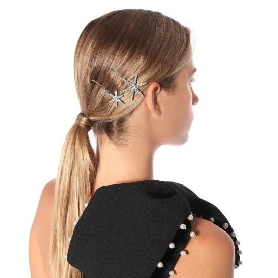 Wish upon these stars from Jennifer Behr – the Aurelia set of 3 barrettes come embellished with Swarovski crystals in enchanting star shapes. The silver-toned design offers one large and two smaller stars so you can mix and match.