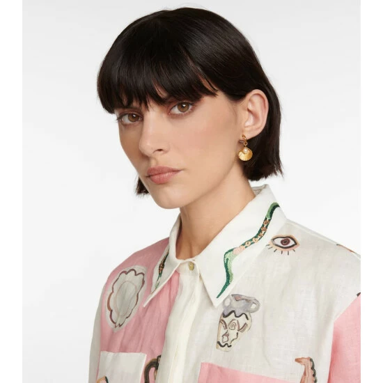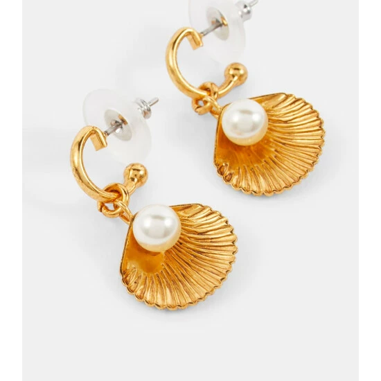 The Caspia hoop earrings from Jennifer Behr are shaped and intricately engraved to mirror seashells. Made from gold-toned brass for pierced ears, they’re embellished with faux pearls for a final dose of luxury.