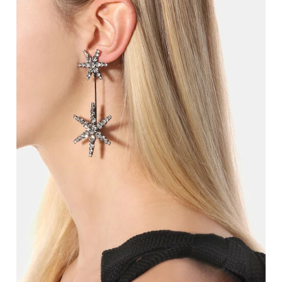 Ensure an enchanting finish to your after-dark ensembles with the alluring Estee drop earrings from Jennifer Behr, featuring a stellar motif seen throughout this season’s collection. Designed for pierced ears and handmade in New York City, the dangling style features blackened post-backs and pendants crafted from silver-tone metal with glistening Swarovski crystal embellishments.
