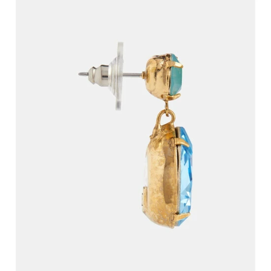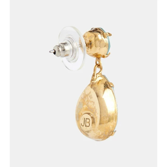 In summery shades of blue, Jennifer Behr’s Jill earrings will complement warm-weather looks. This crystal-embellished pair for pierced ears features teardrop pendants hanging from its circular studs.