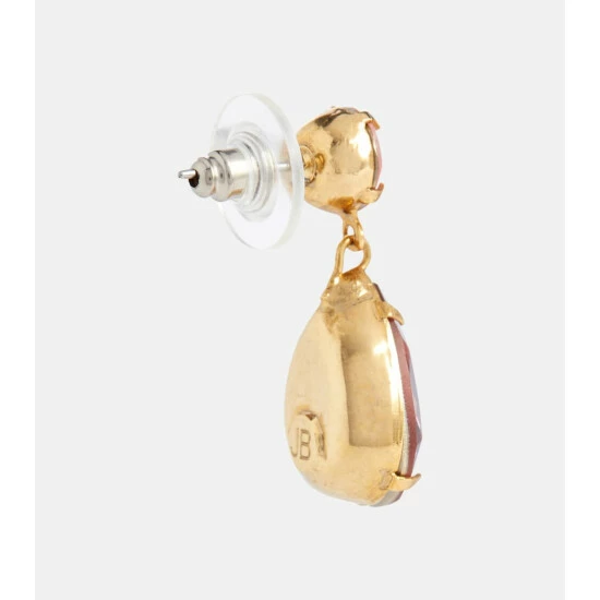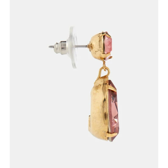 In summery shades of pink, Jennifer Behr’s Jill earrings will complement warm-weather looks. This crystal-embellished pair for pierced ears features teardrop pendants hanging from its circular studs.