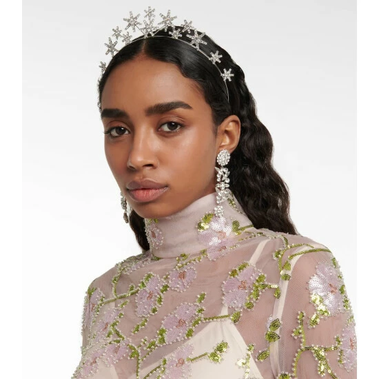 Sophistication and romance are the hallmark of Jennifer Behr, whose accessories are made by hand in the label’s New York City ateliers. The Larissa earrings are embellished with crystal in varying sizes and cuts for an unexpected take on the drop silhouette.