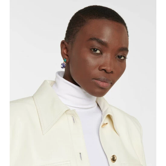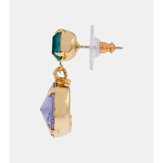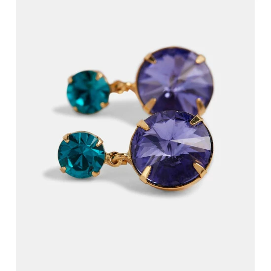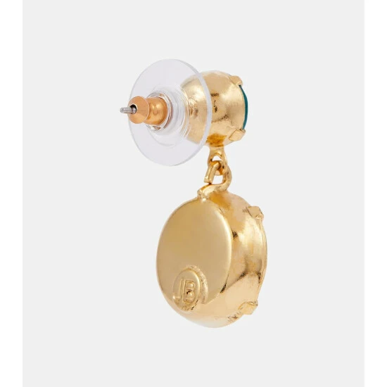 Flaunt your luxury jewelry with Jennfier Behr’s exotic, peacock-hued Lyla earrings. This hand-made, crystal-embellished pair for pierced ears features sparkling round pendants hanging from its circular studs.