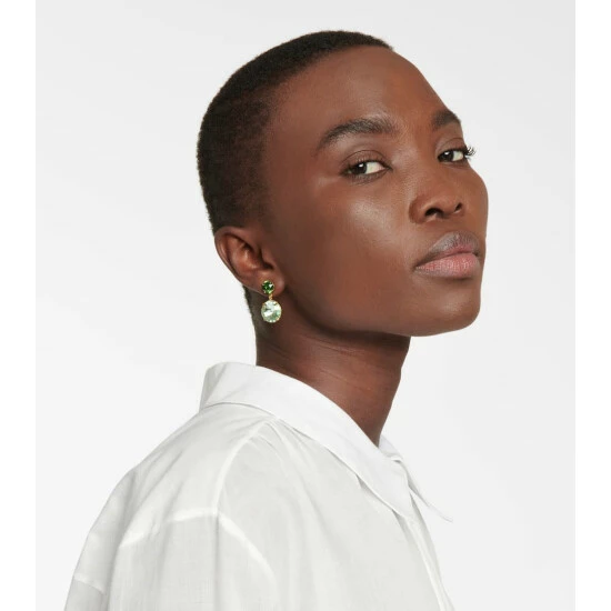 Jennifer Behr’s Lylah drop earrings are embellished with round Swarovski crystals that’ll catch the light with every step. They fasten with post-backs that are suitable for pierced lobes.