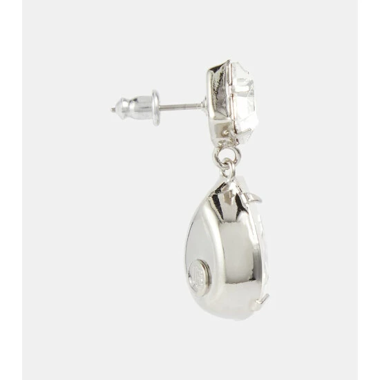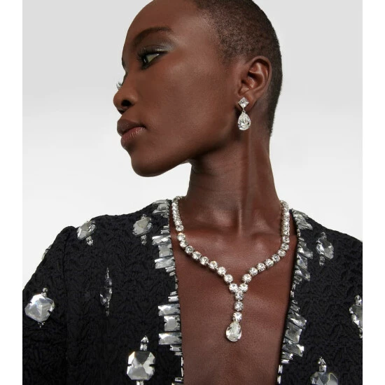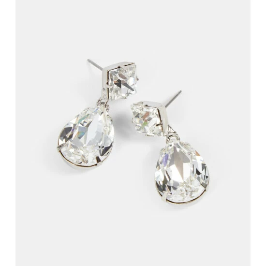 Sophistication and romance are the hallmark of Jennifer Behr, whose accessories are made by hand in the label’s New York City ateliers. The Ramona earrings feature a pair of large square and teardrop-shaped white crystals in a brass setting.